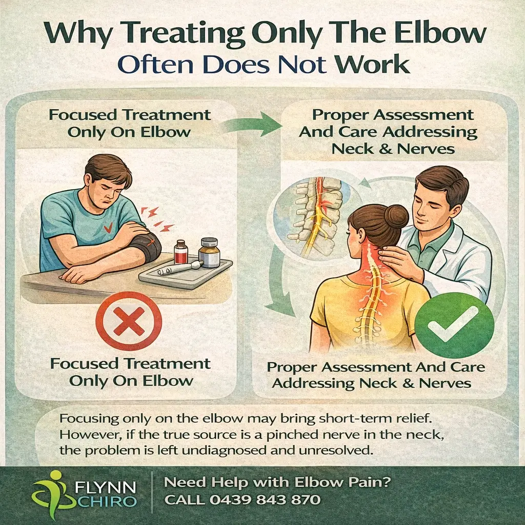 At Flynn Chiro, assessment can include looking at the cervical spine, posture, movement patterns, and nerve-related symptoms rather than focusing only on the elbow itself. Under the care of Flynn Pettersson, management may involve hands-on treatment, movement advice, and practical strategies to reduce mechanical irritation and improve function.